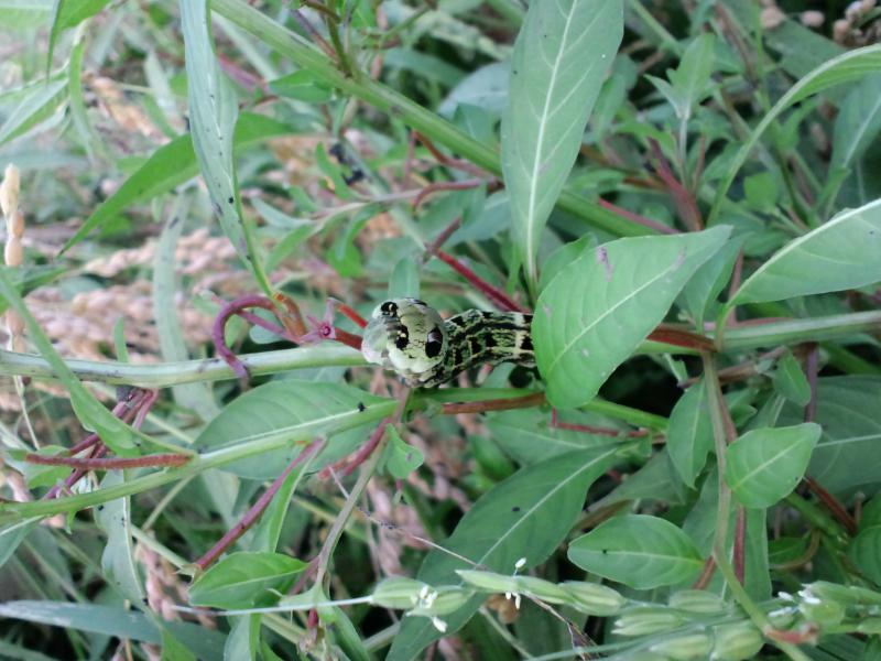 二日ほどカミさんと草取りをしましたが、タデには「イモムシ」が、