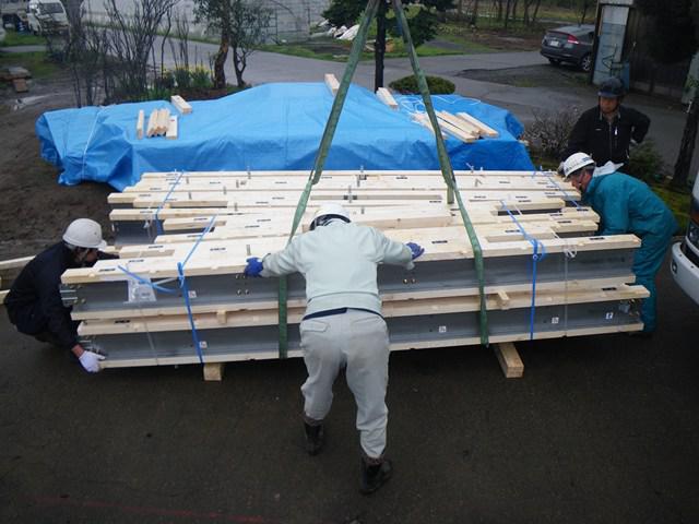 いよいよ現場に、テクノストラクチャー材が搬入されました。