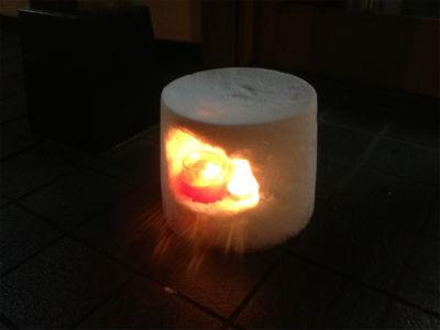 今シーズン初の雪灯篭に火を灯しました。
