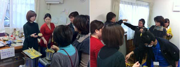 12月3日、仙台市宮城野区の岡田西公園仮設住宅で蜜ろうの双子キャンドル作りを楽しんでいただきました。