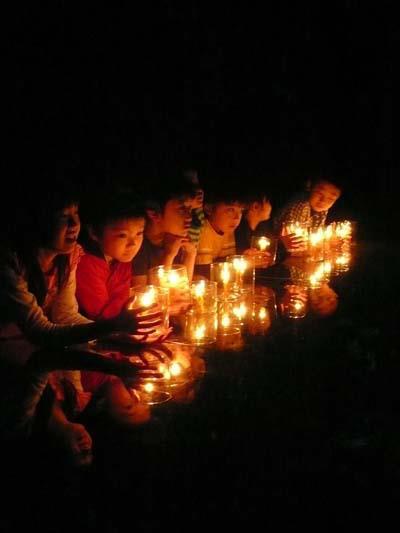 葉っぱ塾(八木文明氏主宰)が二週間に一度、福島の家族を招き開催している「森の休日」で蜜ロウソク作りを楽しんでいただきました。(計4回)作ったあとは会場のAsahi自然観近くにある空気神社で点灯し、原発のない未来を祈願しました。