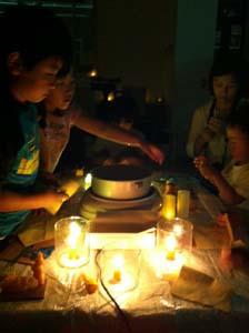 7/6の七夕イブ。福島から避難しているご家族とキャンドルナイトな七夕のつどいを楽しみました。かわいらしい子ども達と、電気照明を使わず、蜜ろうキャンドルの灯りで蜜ろうキャンドルを作りました。2〜3歳児も一生懸命作ってました^^