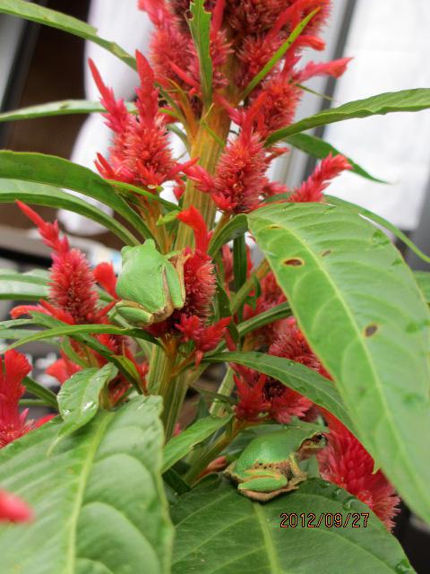 ●正しいカエルとケイトウ・・・上山観光フルーツ園