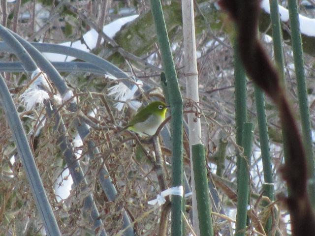 チョコンとするメジロ・・・リンゴはたくさんあるのにムクときたら・・・