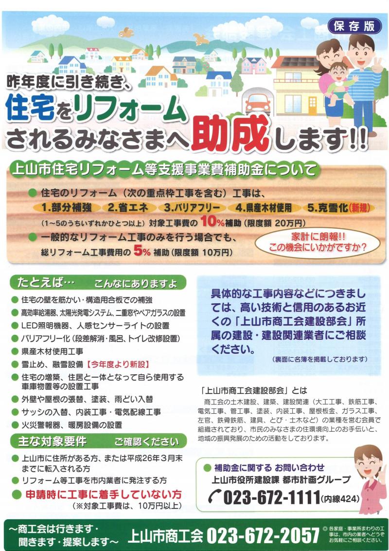 『上山市住宅リフォーム等支援事業費補助金制度』