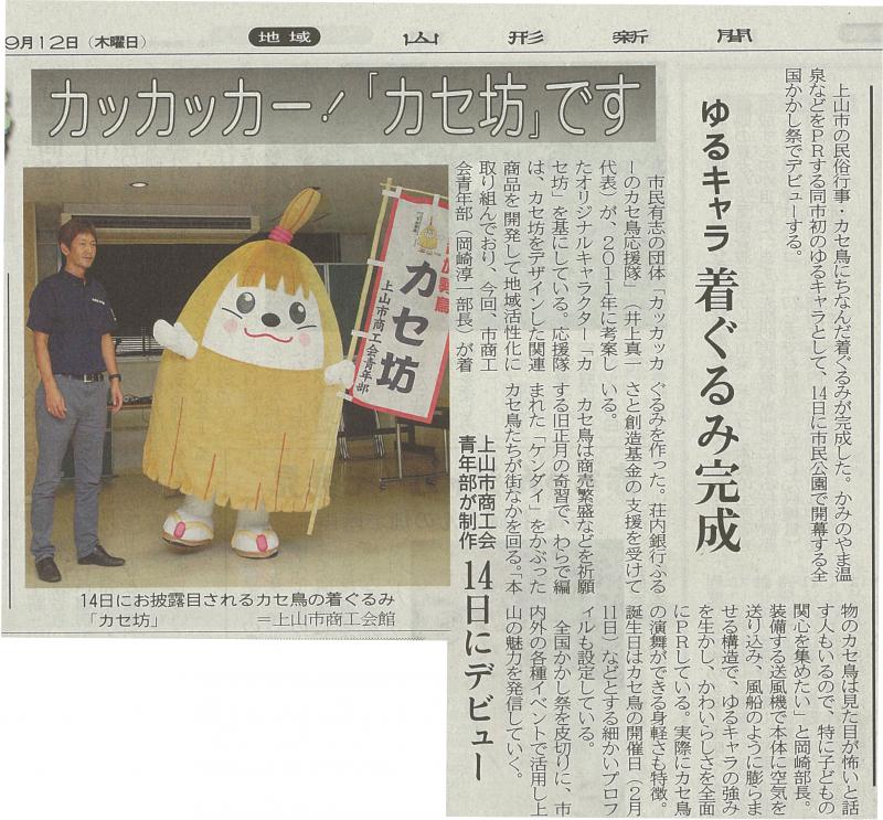 さて、本日の山形新聞に『カセ坊』が登場しました!!