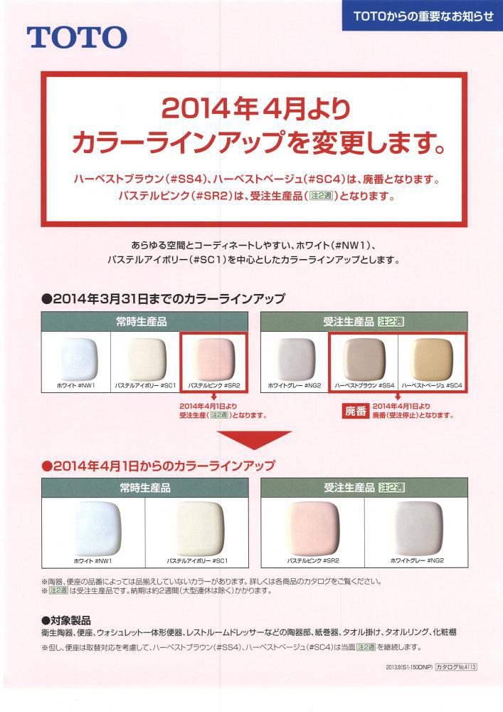 カラーラインアップ 対象製品は、●衛生陶器 ●便座 ●ウォシュレット一体型便器●レストルームドレッサーなどの陶器部 ●紙巻器●タオル掛け ●タオルリング ●化粧棚 となっております。