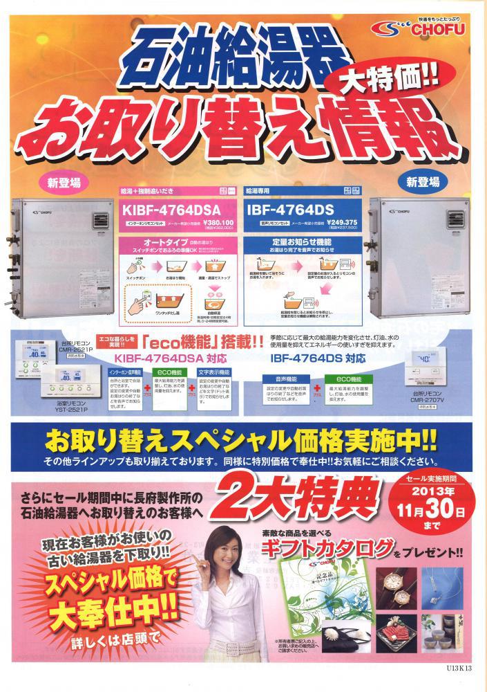 ●2013年11月30日まで!石油給湯器下取りギフトセール実施中!