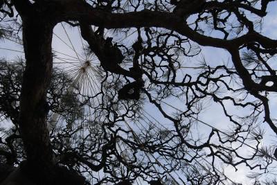 師走ともなると、いつ大雪が降ってもおかしくない天気が続き油断できません。その雪に備えて、庭木の雪囲いと雪吊りの作業が一昨日から始まりました。