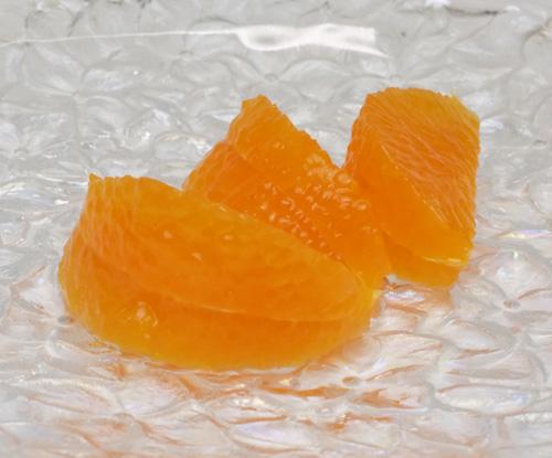 果肉はずっしりと重みがあって、赤みのある橙色なんだ。
