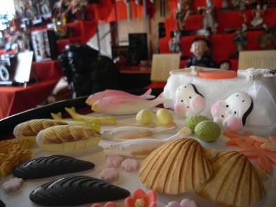 酒田の老舗菓子司・小松屋さんから、今年もお雛様の飾り菓子を取り寄せました。昔ながらの木型で作る片栗細工です。お膳に乗せてお雛様の前に飾ると、一段と華やいだ雰囲気になります。