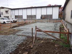 写真は確定した建物の位置に砕石を敷きこんだ様子になります。