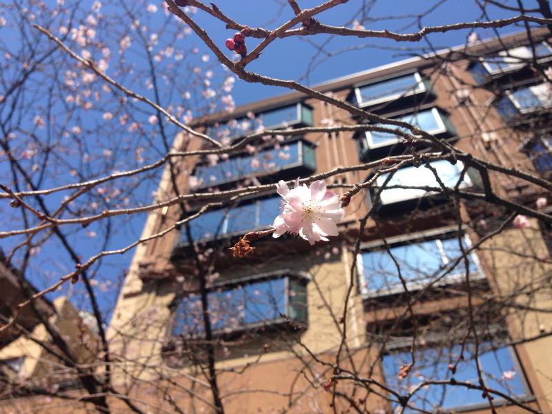まだ五分咲きですが、ソメイヨシノの先陣を切って咲き始めました (^^)