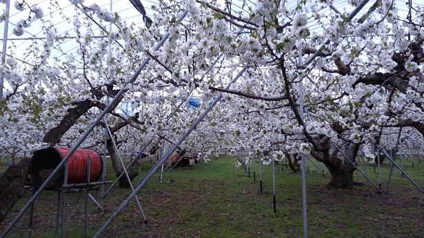 開花が一番遅いさくらんぼ園地が満開になりました。