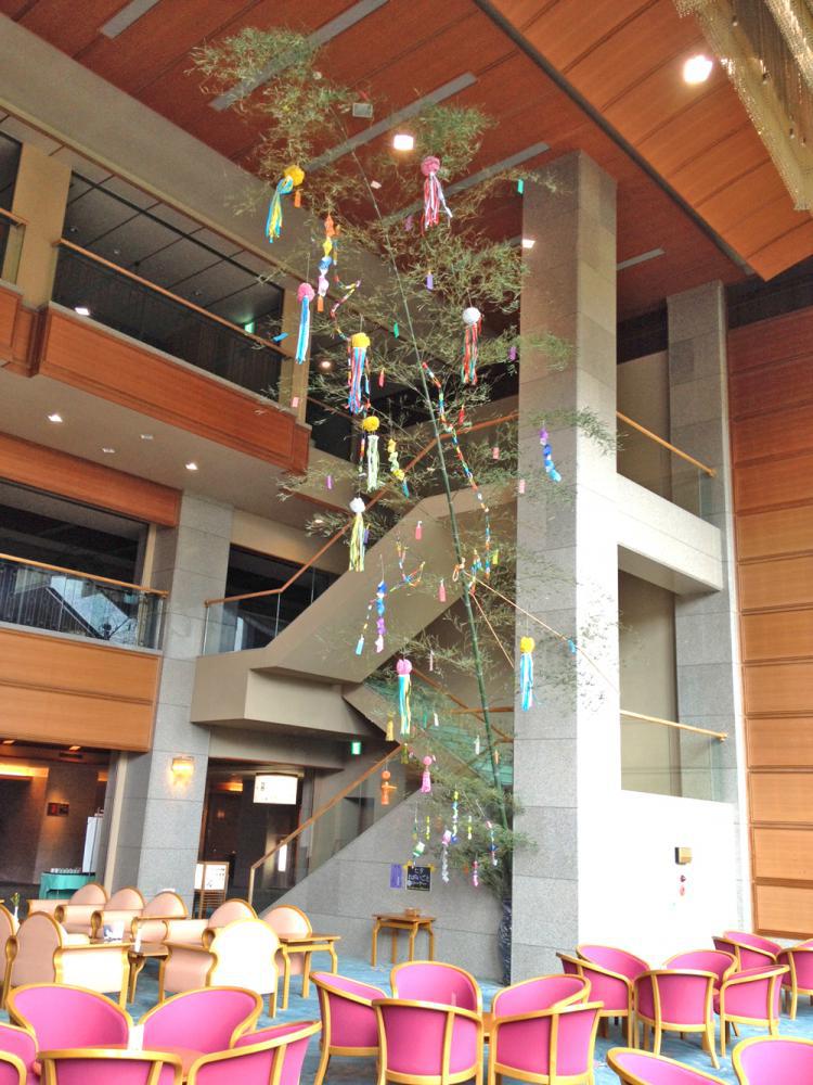 もうすぐ七夕ですね。今年もロビーラウンジに七夕の笹竹を飾りました。3階まで届く大きな竹!短冊も用意しているので、ぜひ願いごとを書いて飾ってください♪美味求真の宿 天童ホテル 公式HPhttp://www.tendohotel.co.jp/