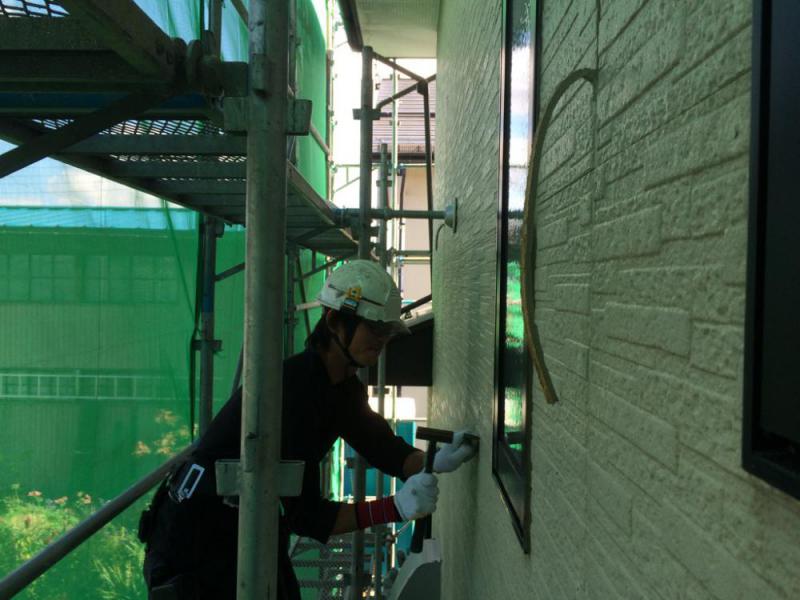 山形のサイディング塗り替えは水戸部塗装へ!シーリング隊長です。  朝晩と、日中の寒暖差が大分激しくなって体調管理が難しくなってきましたね〜。  昨日から着工しました山辺町内W様邸順調に進んでおります。  昨日・今日と助っ人丸ちゃんに釘を締めてもらい自分は切り取り。 今日は打ち込みをして半分近く完了。 付き合いも長く、お互い慣れたもんでいちいち細かい説明をしなくても現場は進みます。 昔は新築の時にも、なぜか一緒に働いてました。今以上に忙しない世の中だったんですね。 同じ仕事ではないですが、ホッとさせられる大事な仲間です。取り敢えず明日で1回目を完了して大工さんの軒天工事待ち。 塗り替えを完了してから、張り替えする板をゆっくり決めて頂いて最後にまたまた丸ちゃんの出番です。 どんな風に変わるのか、楽しみです!