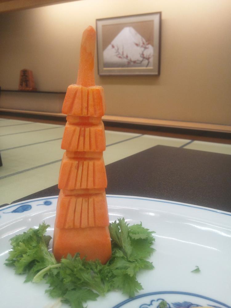 中華さんって器用ですよね。和食さんとはちょっと違う器用さ。食材だけで鳳凰作ったり、包丁1本でいろんなもの作り出します。今回は【羽黒山!!】ん・・??なんか違うくない・・??あっっ四重搭だ・・・(笑)作成者に言われるまで気づかなかったワタシ・・・
