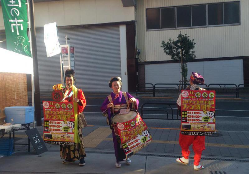 昨日の杉並高円寺の「座の市」はお天気にも恵まれ大盛況。特に、公演の入れ替えがあった午後2時ごろまでは、休む間のなく米沢牛入りいも煮と、米沢牛串焼きの販売に汗だく(山形では考えられない)でした。その後、ちょっとお客さんの入りも落ち着いた時、懐かしい鳴りものが高円寺駅の方から聞こえてくるではないか。そう、チンドン屋さんです。昔、「おもかげチャンチキ」という菜の花座公演でチンドン屋を演じた身には、本当に懐かしい音色。思わずシャッターを切ってしまいました。もう一枚は、今回人気があったつや姫の新米と紅大豆がセットのなった、さくら御飯セット。2合のお米に30gの紅大豆が300円というお手頃価格で、飛ぶように売り切れました。