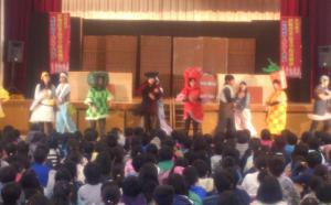 東京都杉並区での置農食育ミュージカル公演は、2月13日(金)午後1時半、桃井第二小学校からスタート。500人以上の観客が見守る中、堂々と演じきり盛大な拍手をいただきました。14日(土)は9時からは杉並四小に約300名、午後2時半からは新泉小学校に80名の方々にお出でいただいての公演でした。産直も大好評。準備してきた、置農産のリンゴジュースやジャム、紅大豆のワッフルなど焼き菓子、大福の他に、卒業生から分けていただいた味噌持ちやりんごのふじ、町特産の紅大豆の豆菓子などが全て売り切れました。本当にありがとうございました。出発は早朝5時半、帰校は夜7時半とタイトな日程を、演劇部や産地直売のグループはとても頑張ってくれたと思います。どの学校でも、評判が良かったばかりでなく、山形に行ってみたい、川西を訪ねてみたいという方が本当にたくさんいらっしゃいました。観光アンバサダーとしての役割も十分に発揮してくれたと思います。ご苦労様、そして、お疲れ様でした。