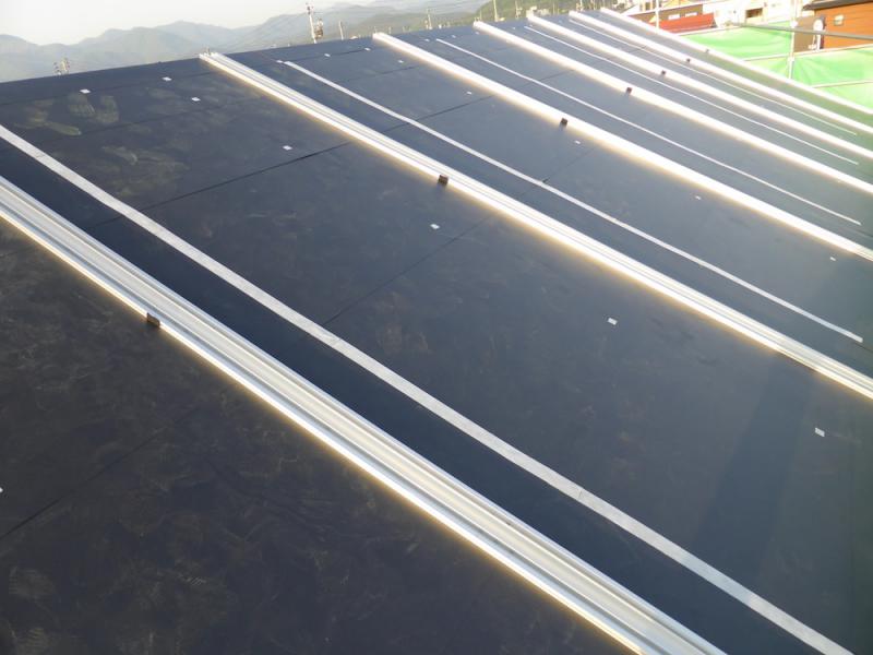 連休明けの今日は、屋根一体型の太陽光工事です。