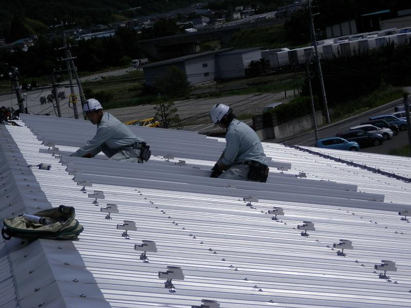 屋根固定金具は特殊になりますが、メーカー指定架台を使用しての施工です。