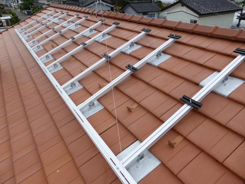 瓦を外して下地を入れて、瓦の形をした支持瓦を取り付けて架台を施工。