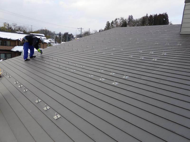 朝から屋根の雪を下して、午後には乾いた屋根で工事ができました。