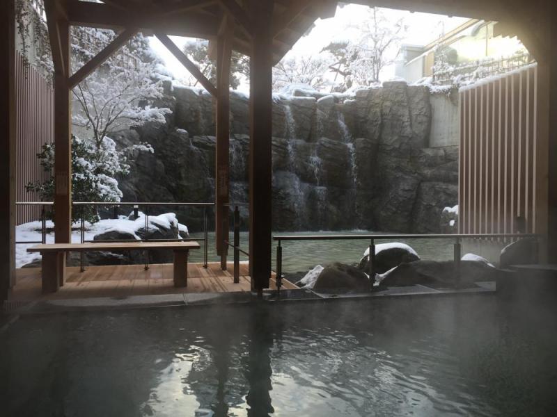 雪の降る日が少しずつ増えてきた今日この頃。今朝もさらっと雪が降り、さらに雪がちらほら舞っていて、冬ならでは温泉景色となりました。夜だったら灯りがともり一層幻想的な景色となります♪冬の雪見露天風呂、おすすめです! 美味求真の宿 天童ホテル 公式HPhttp://www.tendohotel.co.jp/
