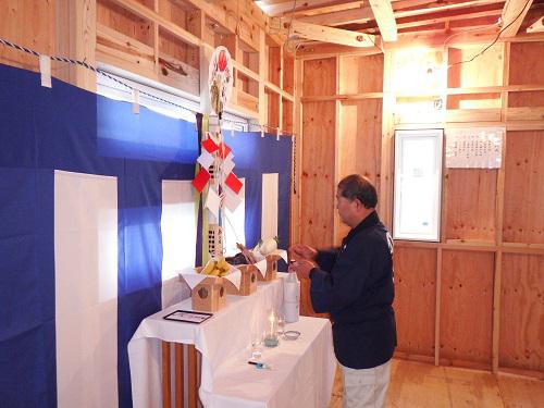 無事に棟木も上がり、本日めでたく、H様邸の上棟式を迎える事ができました。式も滞りなく進み、最後に参加者全員で乾杯をいたしました。毎日寒い日が続いておりますが体調管理には十分気をつけて工事を進めてまいります。