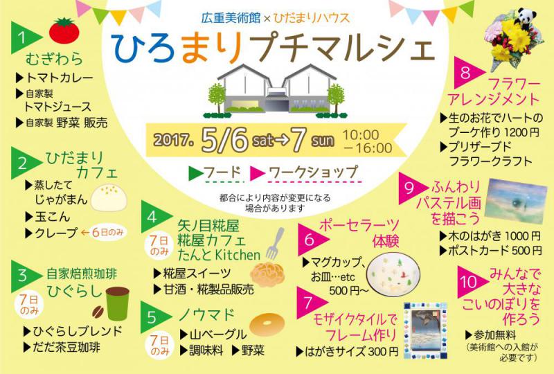 広重美術館とひだまりハウスのコラボイベント第5弾。今回は5月6日(土)7日(日)に開催します。初夏の風を感じながら、手づくり体験を楽しみ、おいしいものを食べて、のんびり過ごしていただければいいなと思っています。皆様お誘い合わせのうえ、遊びに来てくださいね(^_^)/