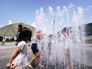 ●暑い日は、道の駅天童温泉の「噴水広場」で水遊び!