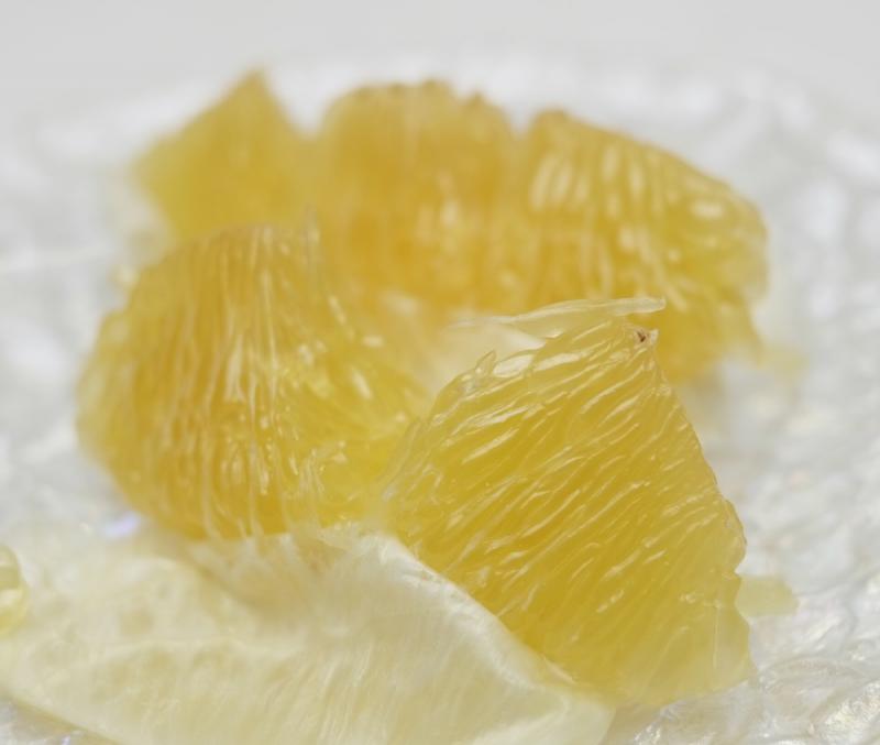 果汁が豊富で肉質柔らかく苦みのないグレープフルーツのよう。