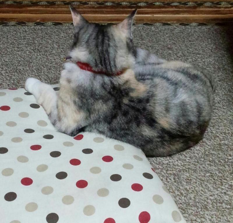 おざぶにくつろぐ後ろ姿