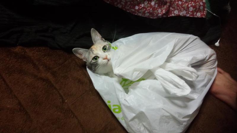 カサカサ、シャリシャリ、袋が大好きなにこちゃん!