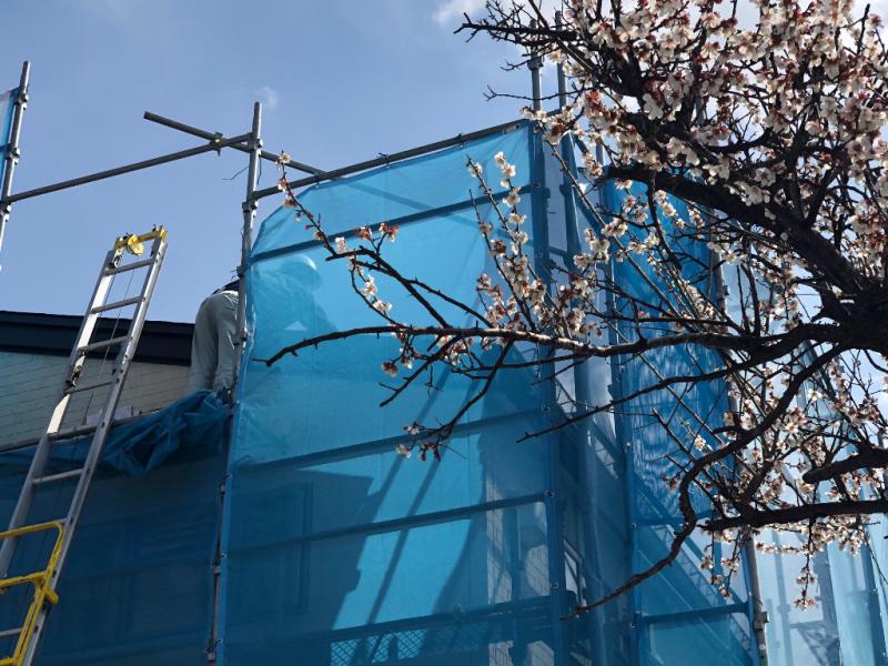汗がにじむくらいの暖かさのなか、庭の桜は満開でした。