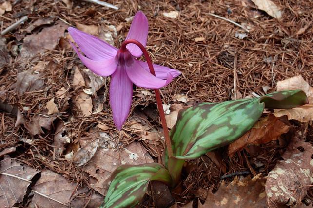 海抜780m月山道ぞいにあるカタクリ。数が少なくてしかも移動するので気づかれない。今は一輪だけです。
