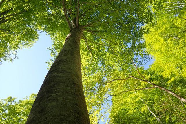 天を仰ぎ見る。丸い根開きの中で。「どうして雪が丸く融けるの?」とても良い疑問だ。