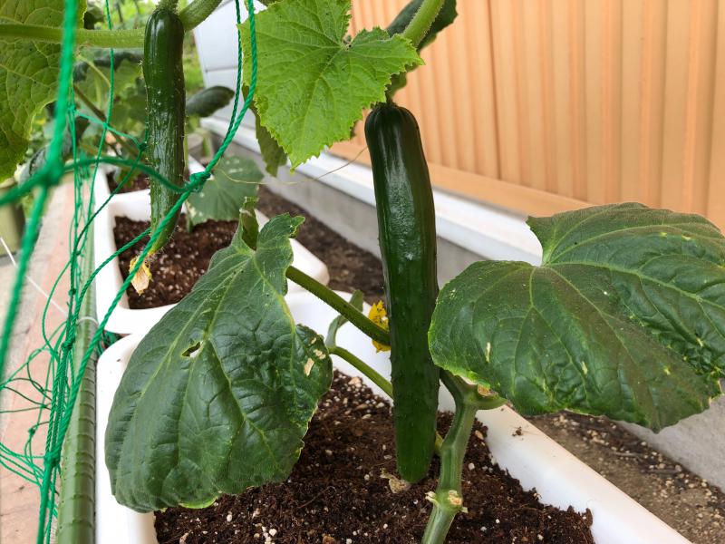 きゅうりの一番果がちょうどいい収穫サイズになりました。
