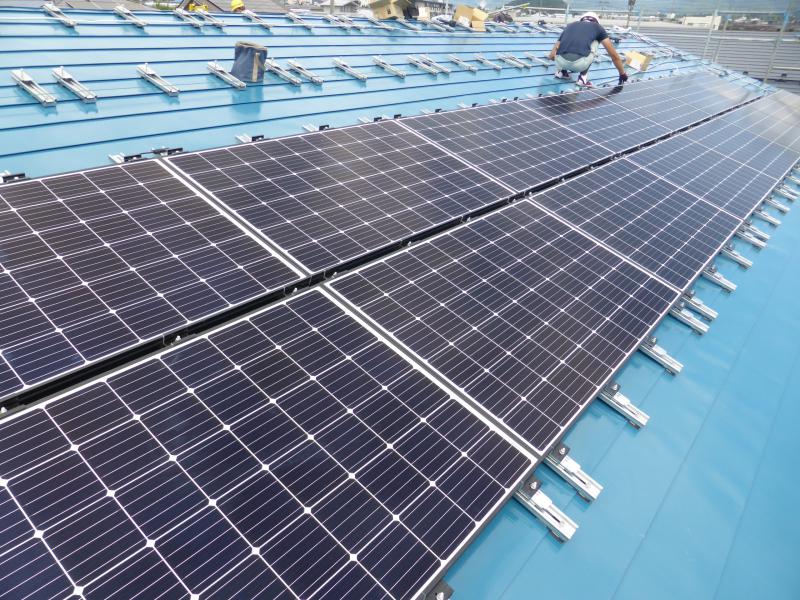 屋根塗装後の太陽光パネル工事です。