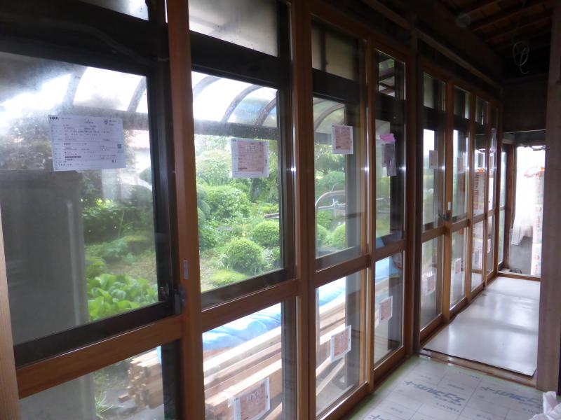 寒々としてきた縁側の大開口窓の内側に、樹脂製内窓を取付ました。