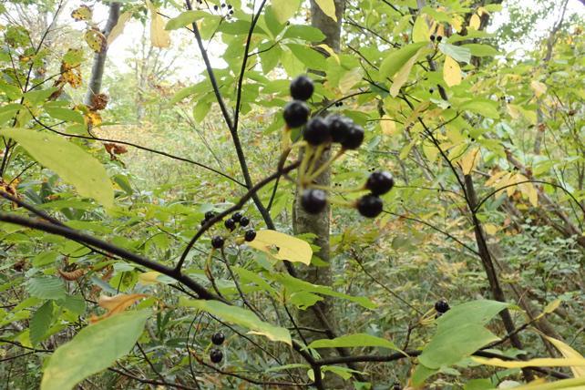 10/14 月山山麓の博物園を散策しました。秋がそこまできました。オオバクロモジが黒く光っていました。クロモジはクスノキ科です。日本海側にある(限の木)タブの木も同じ科です。本州中部北西(園内も)はオオバクロモジです。