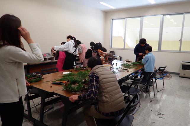 暖かい和みのリース造りでした。黙々と子どもたちに押されて大人も。