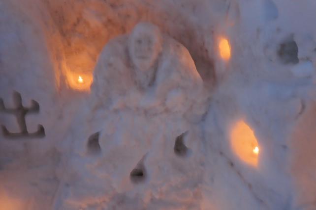 絶好の日和になりました。快晴で適当に寒い。姥様の像。