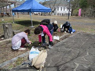 ●女性部寒河江みがき隊 お花見前の長岡山を清掃しました