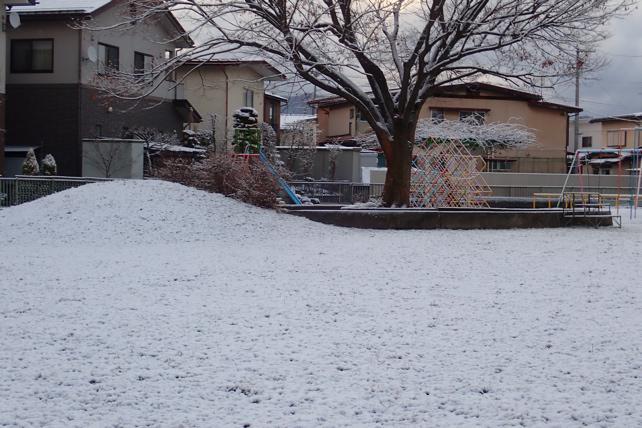 朝の一時間ぐらいが雪景色です。表面だけです。