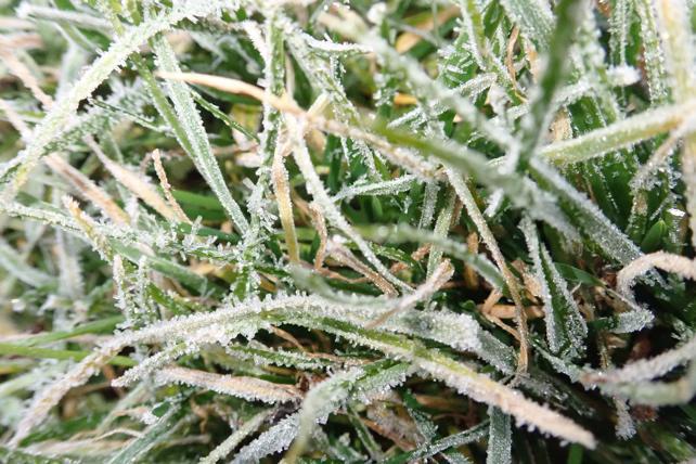 今日は-3℃ 草むらは霜に覆われていました。