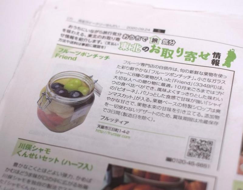 河北新報社の《河北ウィークリーせんだい》で「フルーツポンチッチFriend」をご紹介頂きました!