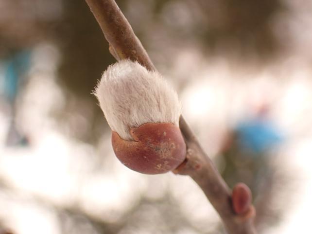 バッコヤナギト呼んでいますが北方系だと高木で、「エゾ」バッコヤナギです。開花し始めている花芽が寒空に光っていました。
