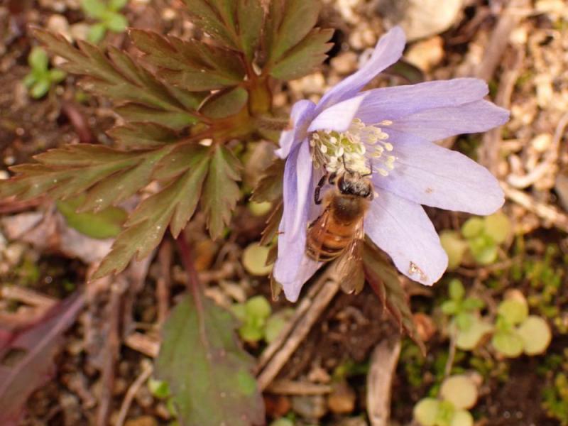 キクザキイチゲに送粉者ミツバチが来ていました。