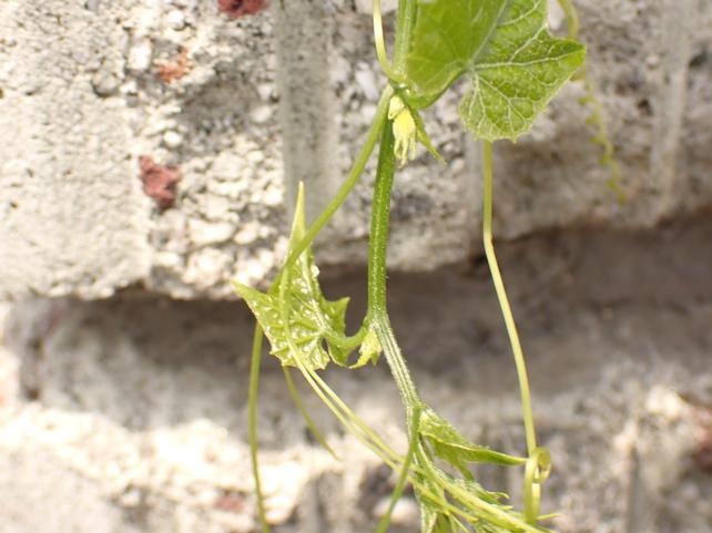 しっかりした巻きひげは変わらない。コンクリートの凹凸にしがみついている。